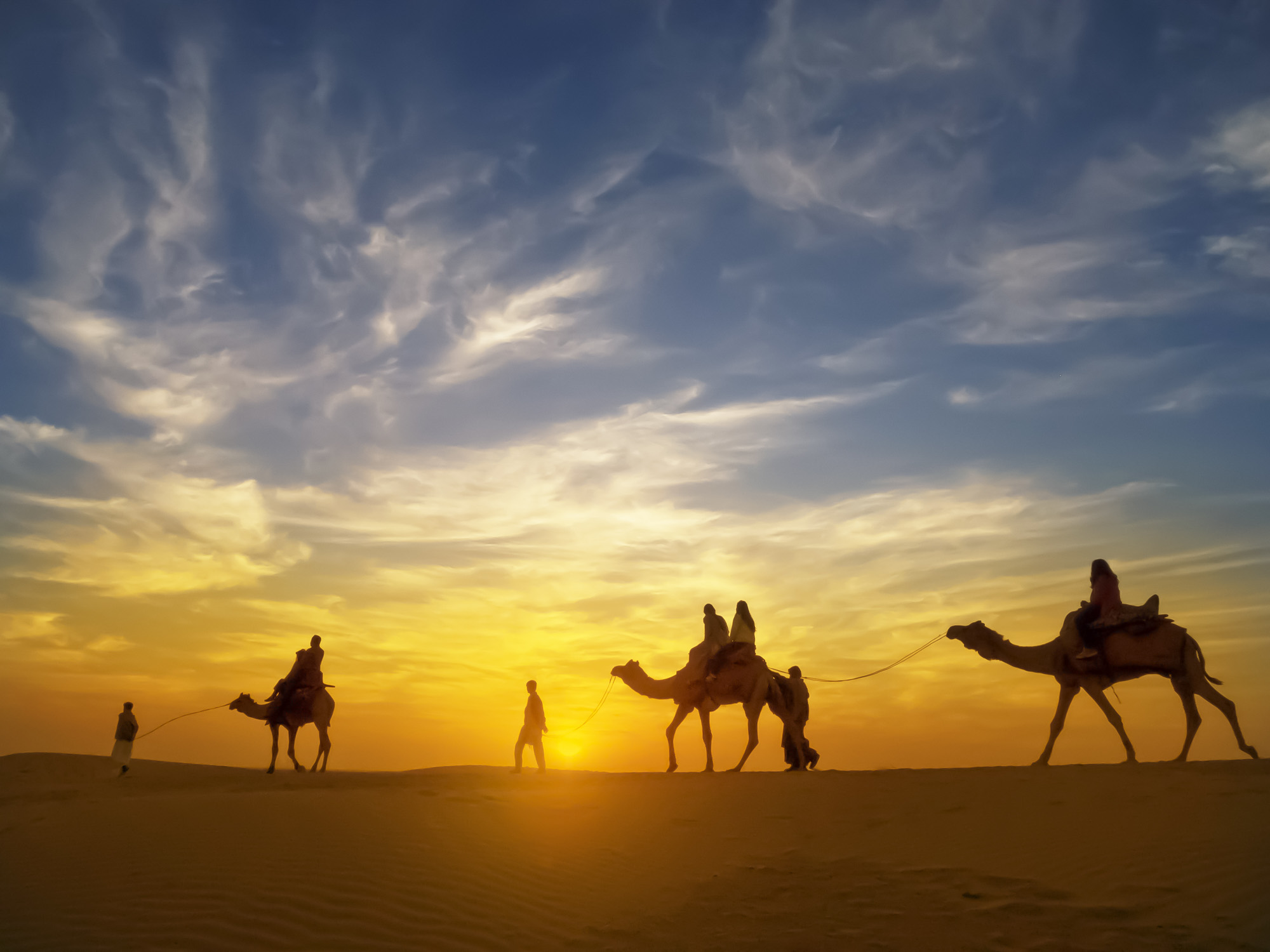 Drive deeper into the golden desert towards Jaisalmer. Arrive and relax as the city’s golden sandstone glow welcomes you. The evening is free to enjoy quiet desert air and fort views.